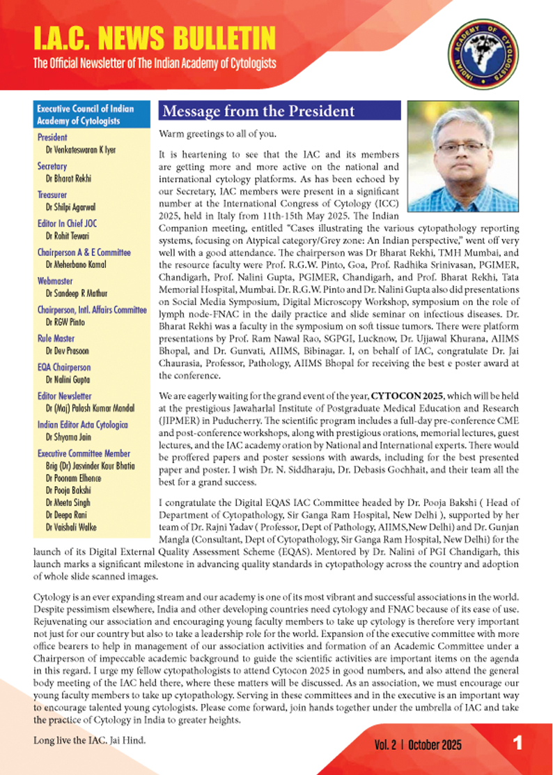 THE OFFICIAL NEWSLETTER OF THE INDIAN ACADEMY OF CYTOLOGISTS